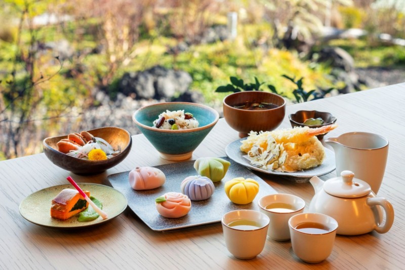 和の庭園を眺めながら、季節の和膳と「静岡三茶(緑茶・紅茶・烏龍茶)」のペアリングを楽しむ特別な会です。