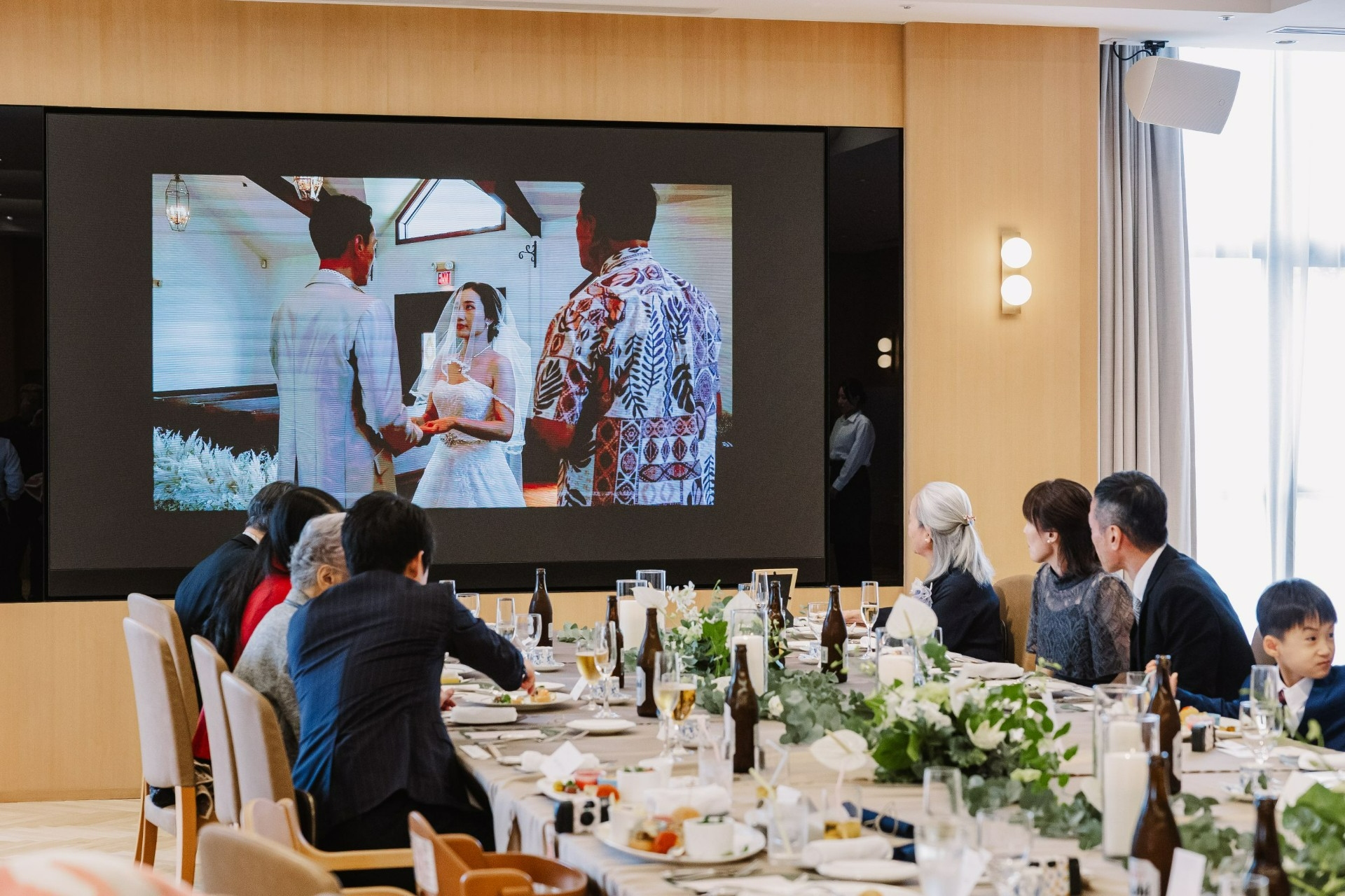 ハワイの挙式映像を見ていただき 全員参加の格付けゲームや