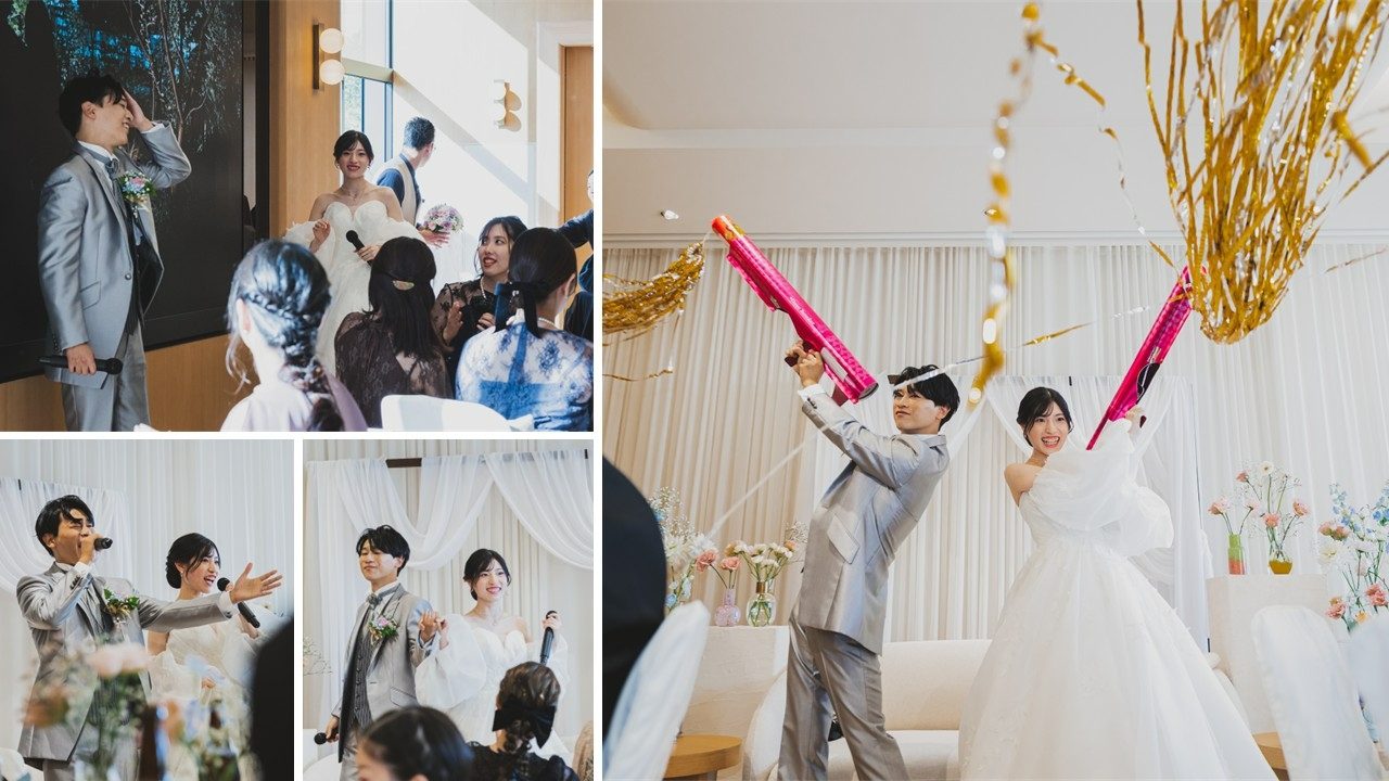 カラードレスの色当てクイズなど 皆さまと一緒に楽しい時間を というおふたりの想いが随所に溢れます