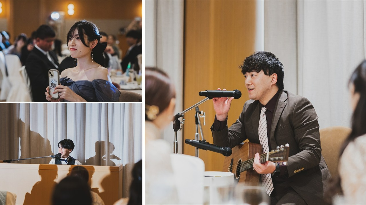 新郎ご友人よりギターに合わせて歌のプレゼントの後は