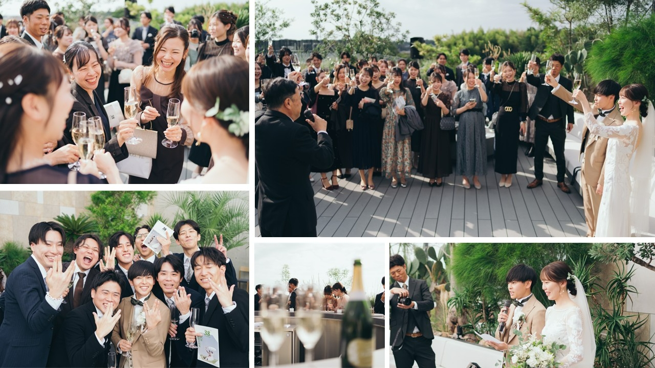 挙式後の緊張がとれた瞬間に皆さまと乾杯